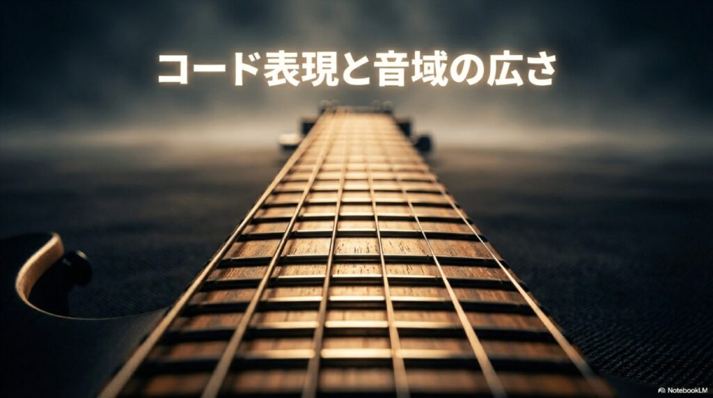 ここでは、7弦ギターを選ぶ最大の理由=音域と表現力の拡張を中心に、6弦では得にくい“おいしい部分”を具体的に解説します。あなたの音楽性に本当に刺さるメリットかどうか、判断材料にしてください。